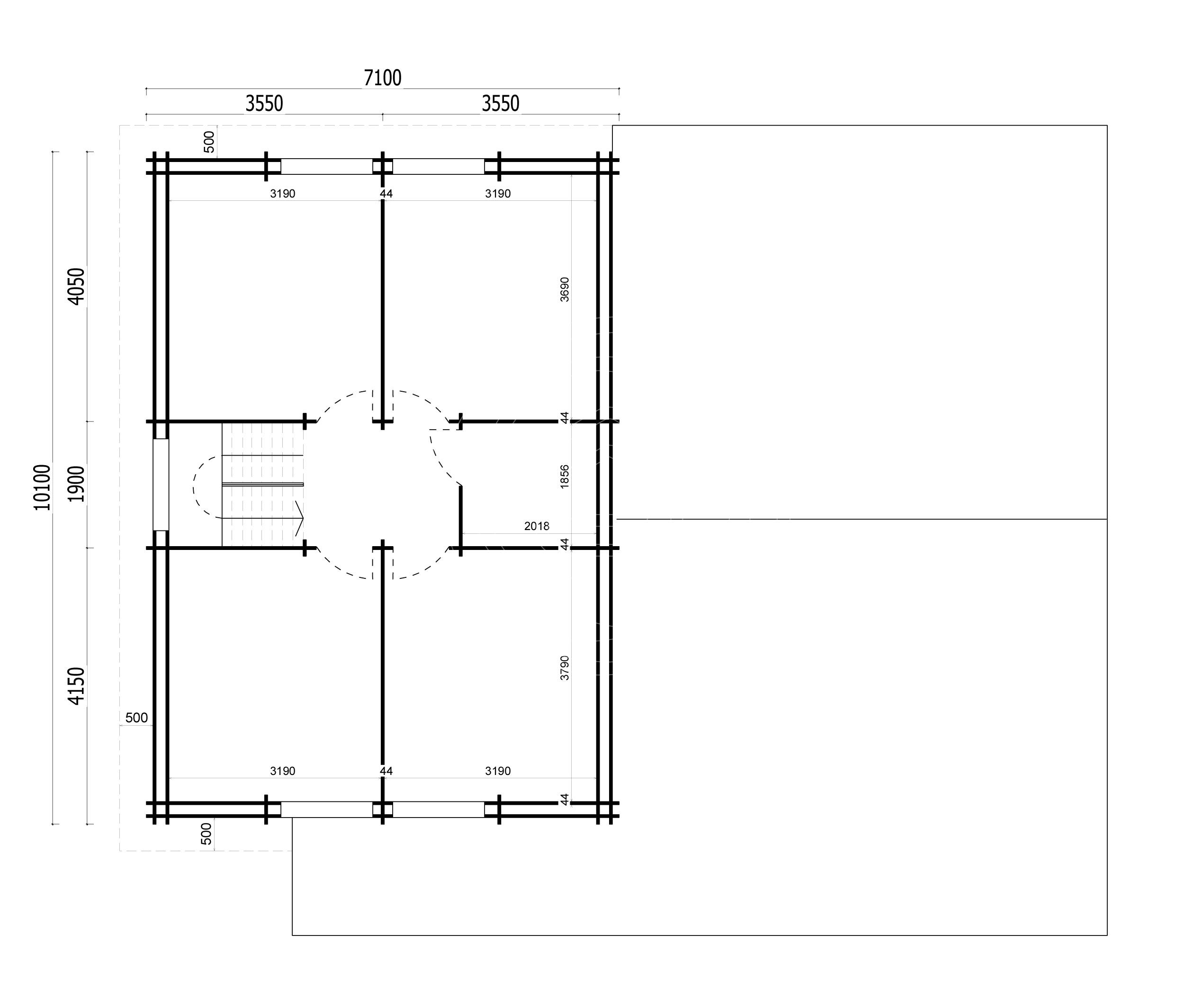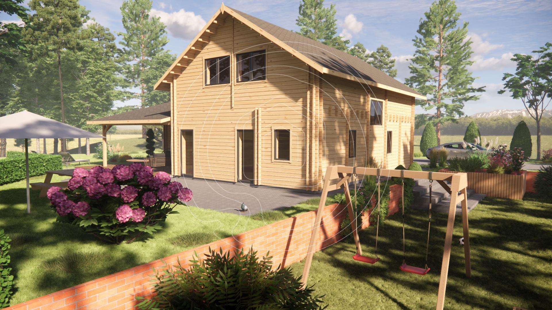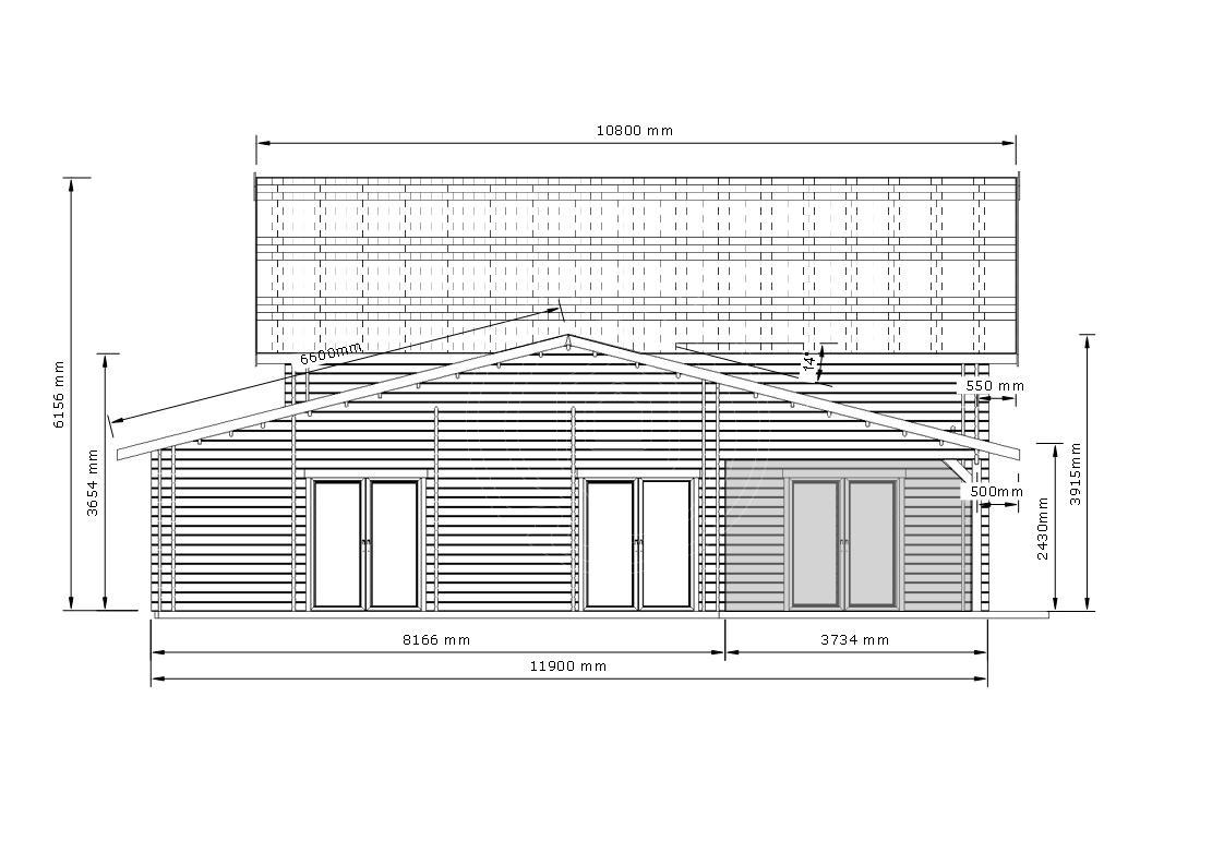 | Wall thickness | 44mm + 44mm tongue&groove log |